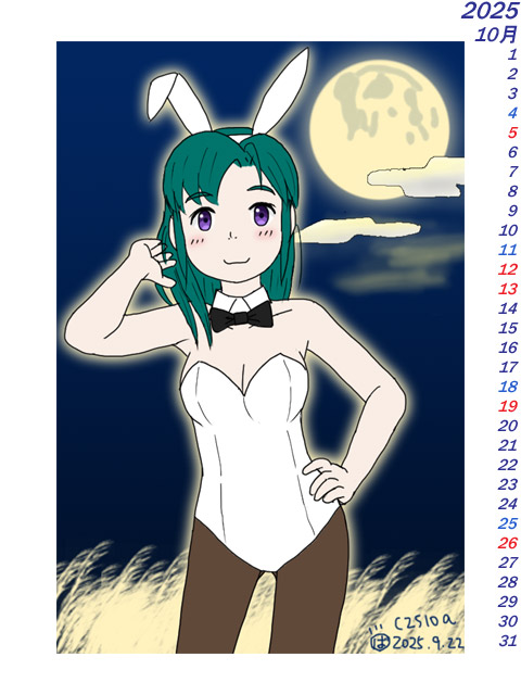 10月は「ヨコハマ買い出し紀行」から白バニーなアルファさんです.ちなみに2025年の十五夜は10/6.