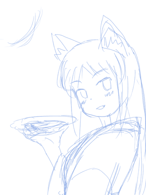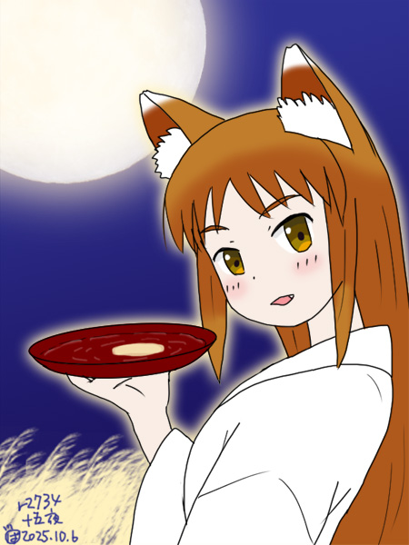 ちの恒美さん.なぜか巫女装束で中秋の名月を愛でながら月見酒