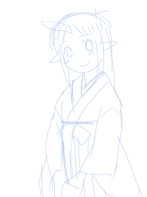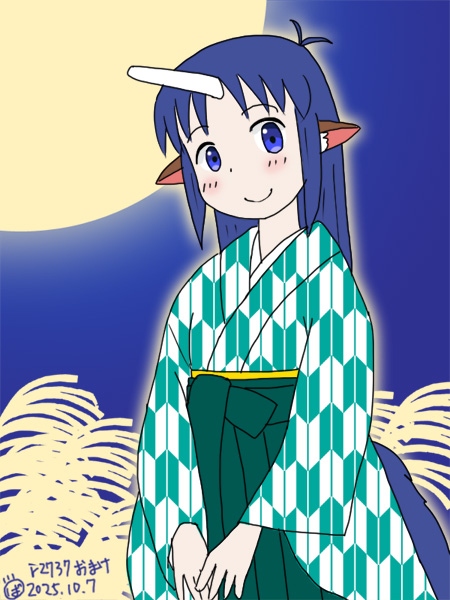 ラフをtwitterにアップしてから「先日描いた狐よゐさんとポーズ被ってる」と気づいたので,どうせなら構図まで似せようと.十五夜は10/6だったけど満月は10/7だし.