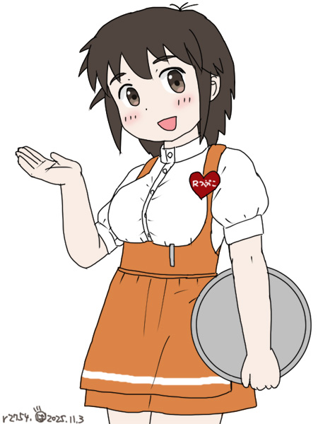 ちのR粒子さん.学園祭のクラスの模擬店でしょうか?どこかで見たような某ファミレスのコスしてますw