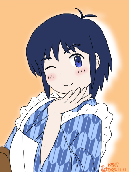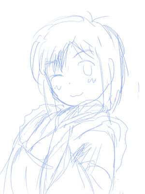 よそ様の子描かせて頂きましたシリーズ.もりなかはじめさんちの紫音さん.粒子さん達と違う学校なので学園祭でなくてもいいかなと思いつつ,だいたい似た頃やるもんなので,紫音さんのクラスは和装喫茶にしました(ぉぃ