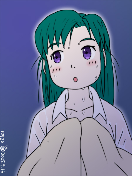 「濡れたYシャツ一枚のみを着たアルファさん」