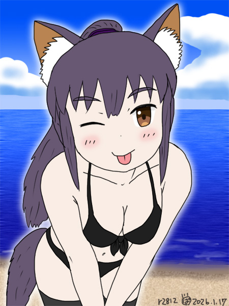 ちのくノ一さん.ケモ耳水着ニーソにチャレンジちう.