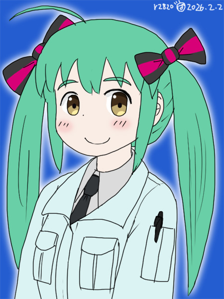 よそ様の子描かせて頂きましたシリーズ.木谷圭さんちの志保ちゃん.作業服でツインテはなんだかなって感じするけど・・・仕事が終わった後に一人で,職場の宴会でやる余興の練習してたのかも.歌って踊れる会社員o(,,o)☆\(-"-; (2/2はツインテールの日)