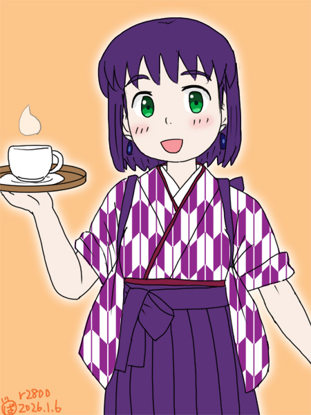 矢絣袴なココネ.昨年某ファミレスのコスがマイブームだった流れがカフェアルファまでo(,,o)☆\(-"-;