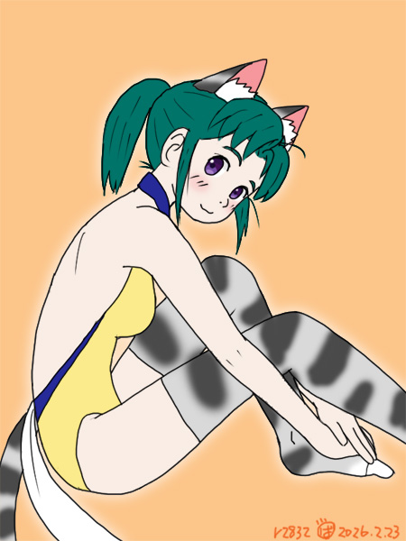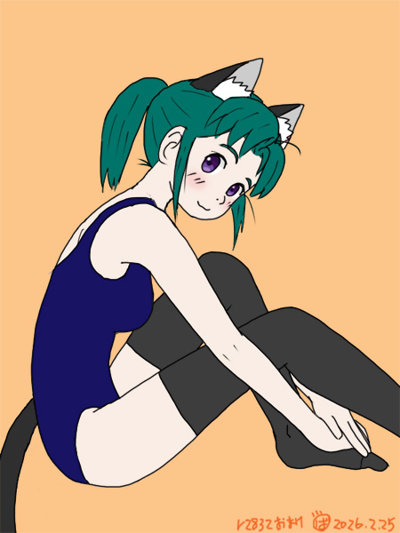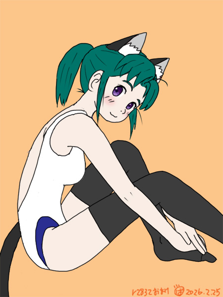 アメリカ西海岸・・・げふんげふん,ウチューから「スク水バージョンもあるとおっちゃんはしんじてる」と電波を受信してしまったので,地球の平和を守るためにスク水バージョンも作りました.これでネコ耳スク水ニーソ・アルちゃんが完成した(・∀・)